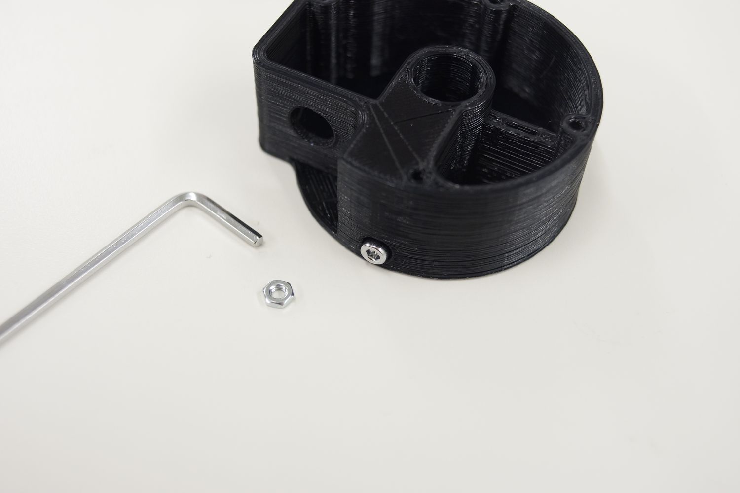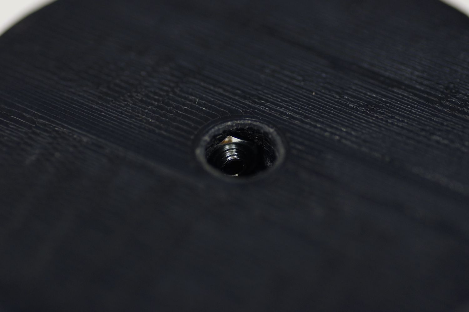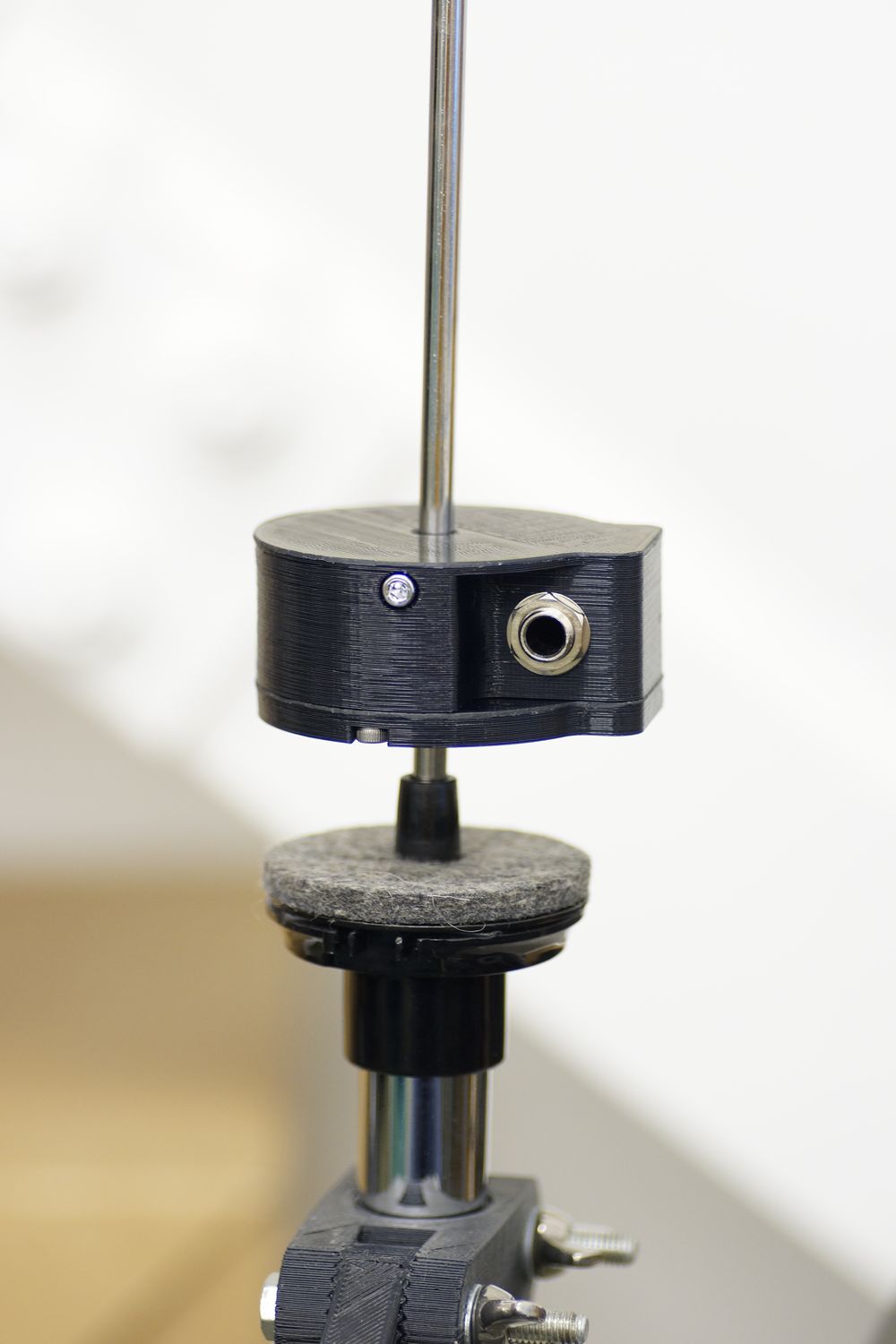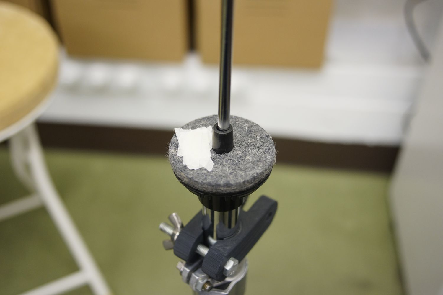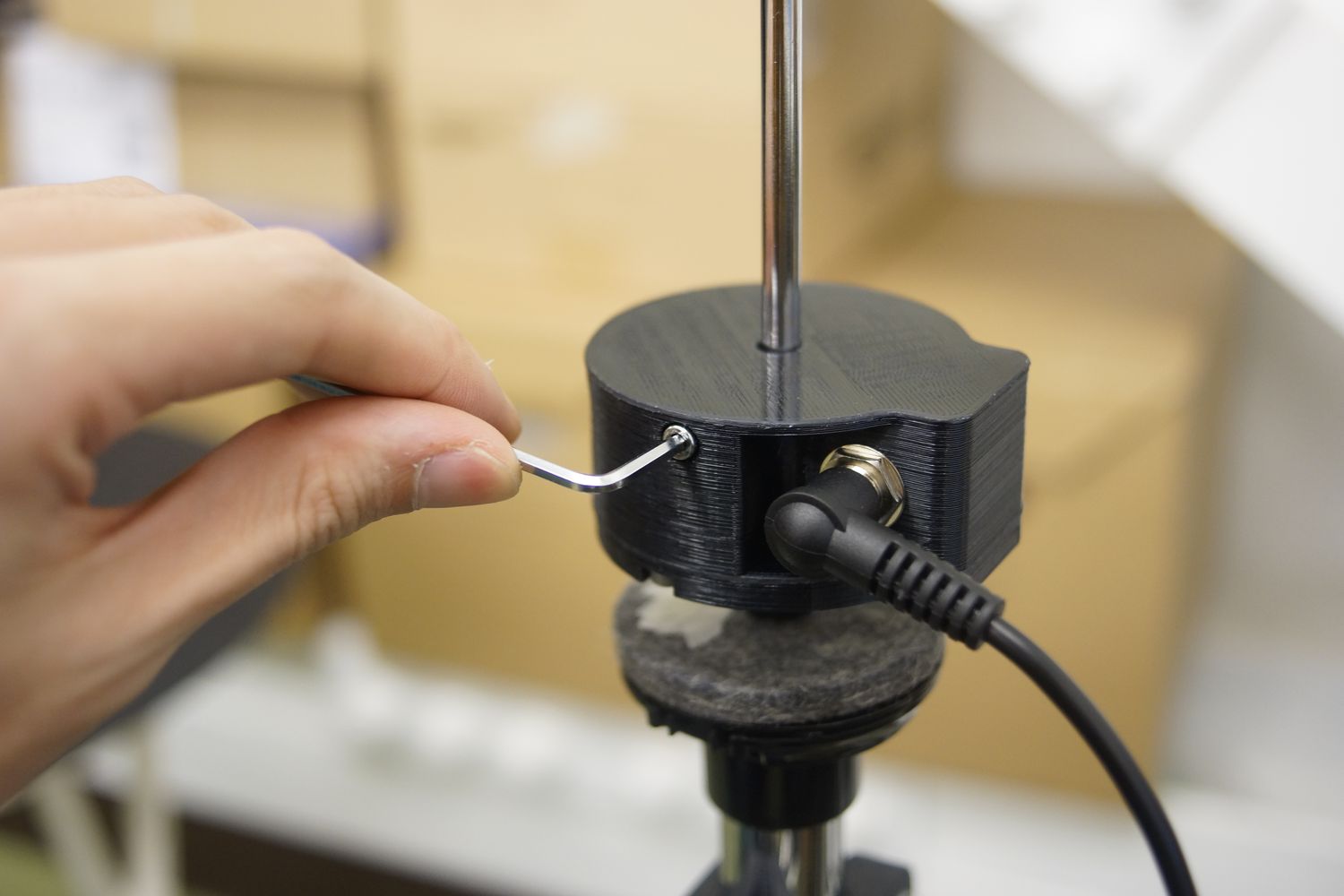 んで、これをハイハットスタンドに付けるんですが、固定用のボルトが入るようになってますので、M3-25mmのボルトとナットを仕込みます。