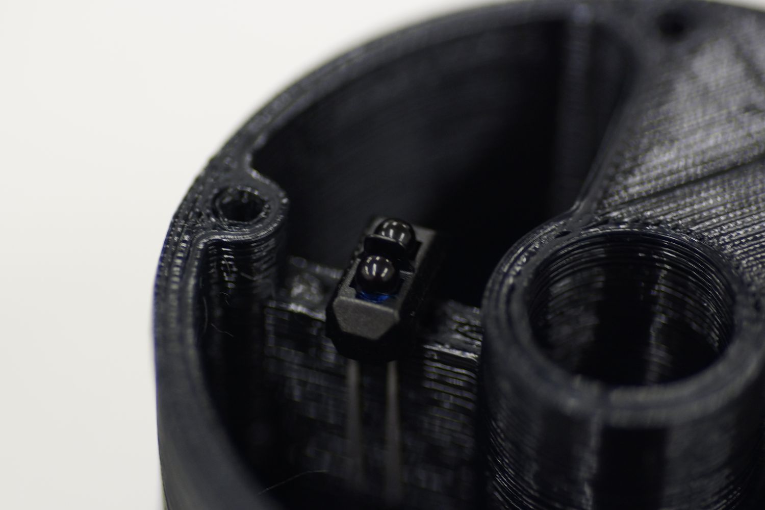 あとは中に入れるだけです。センサーの高さとケースの高さが揃うように設計してあります。つまり蓋の厚さ6mmがセンサーとの最小距離になります。蓋はM3-12mmのボルトで固定してます。中身はだいぶスカスカです。