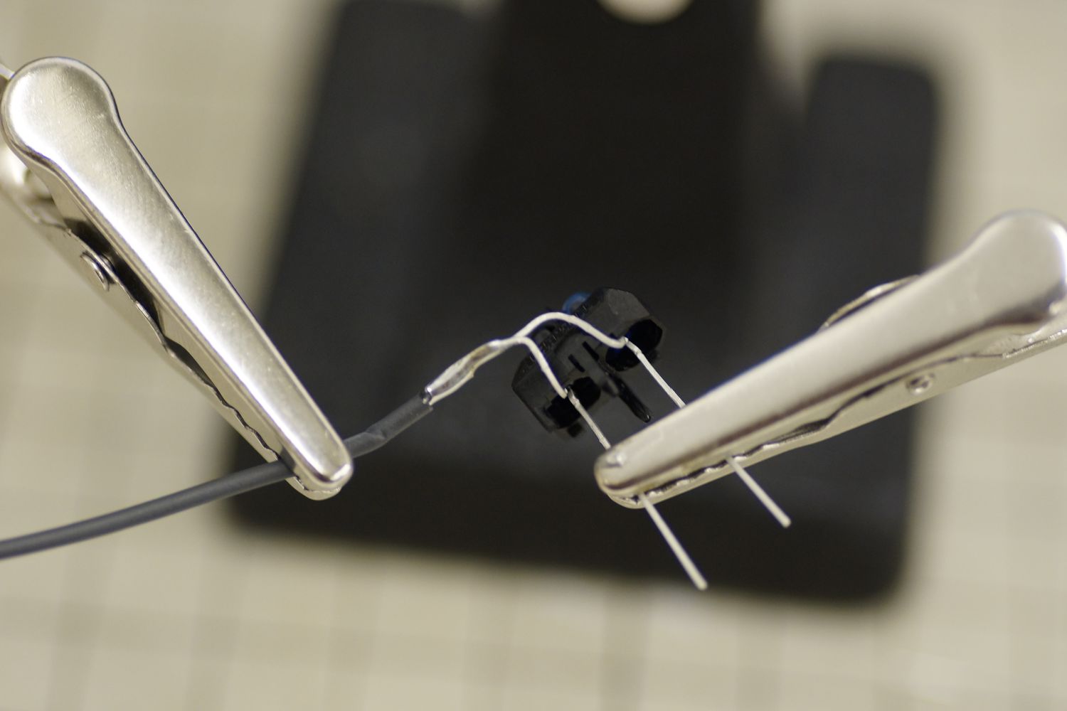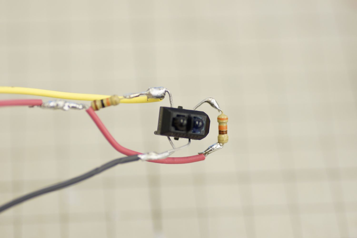 軽めの空中配線です。はんだ付けしやすいように脚が長めのTCRT5000Lを使いました。たぶん普通のモデルでもいけるでしょう。
