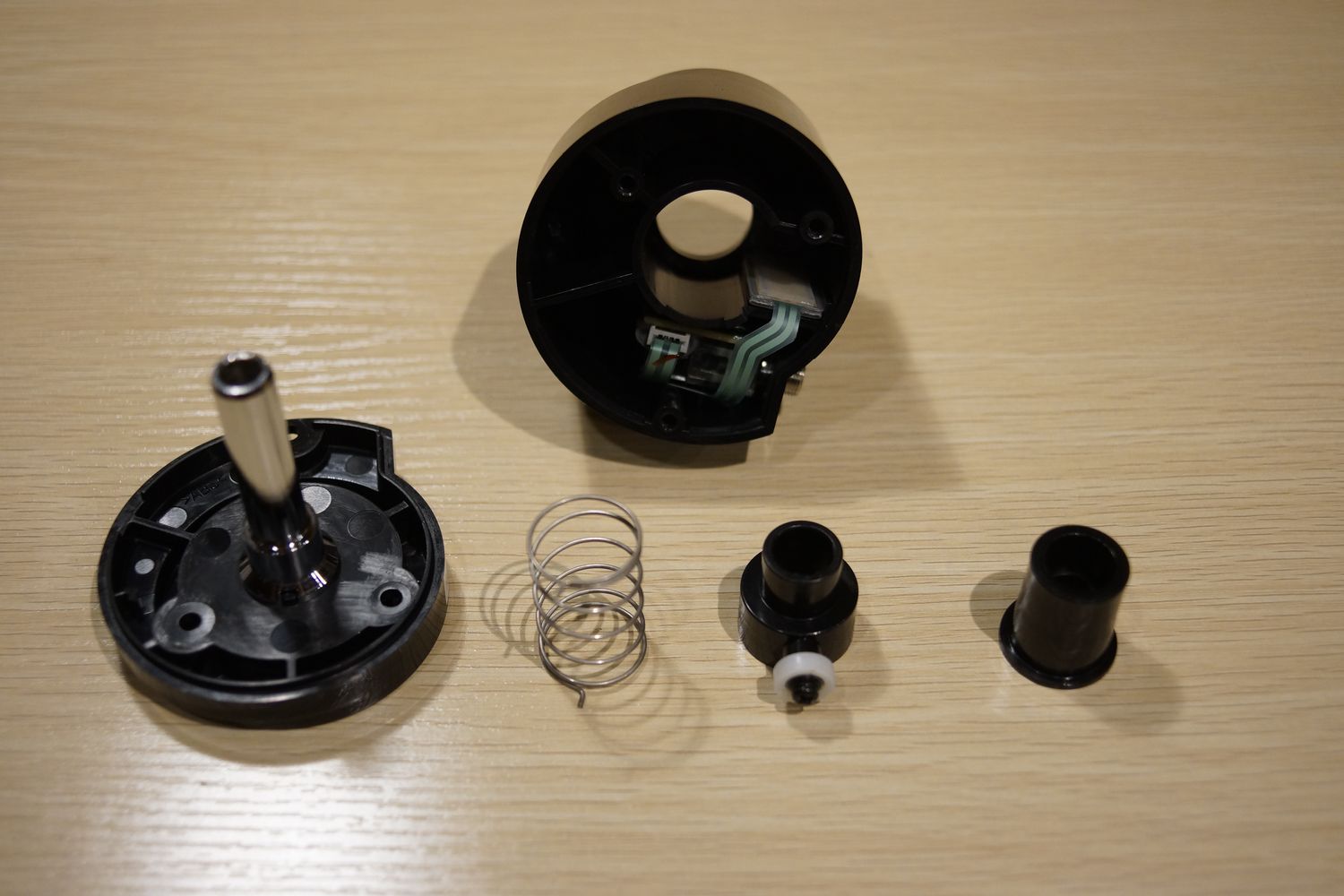 ローラーがセンサーの上を転がることで位置を検出しています。写真だとわかりづらいですが、しっかりローラーがセンサーに押し当てられるようにバネで押さえつけるような構造になっています。単純明快な構造です。