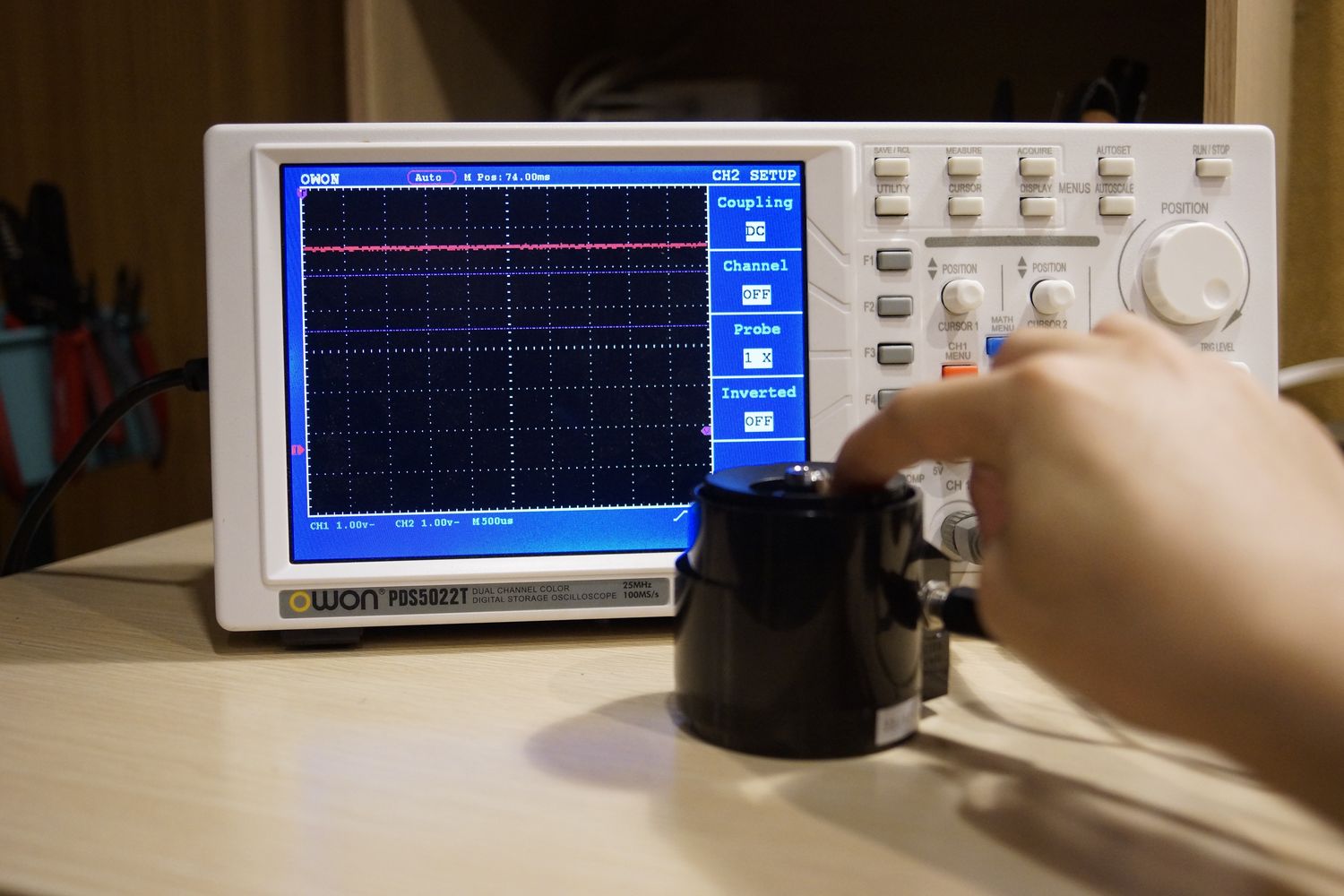 続いてオシロで信号を見てみましょう。ハイハットコントローラーにはステレオケーブルが使われいるので3本の導線があります。TRSってやつです。ちなみTRSはTip Ring Sleeveのことです。