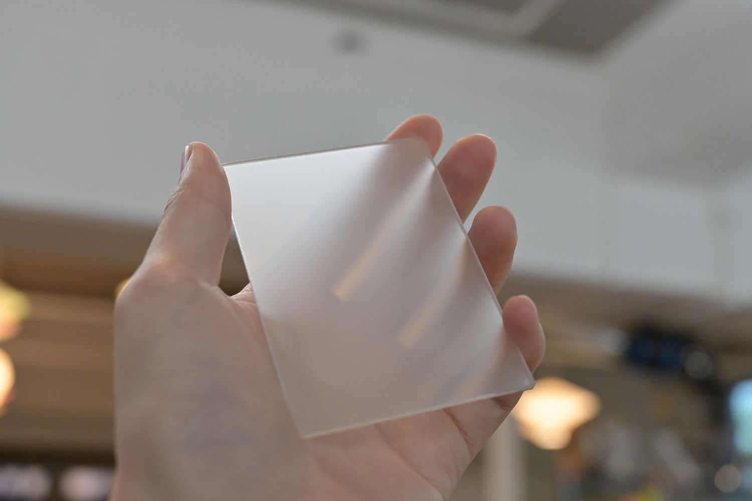 すぐに思いつく磨りガラスっぽいものと言えばコレでしょう。入手性も加工性も高いのでこれがフォーカシングスクリーンとして使えたら最高だったのだが世の中そう簡単にいかない。 フォーカシングスクリーンとして使うには少し目が粗いのと、ちょっと明るすぎた。 何種類か試したが粗さや質感にほとんど変わりはなかった。