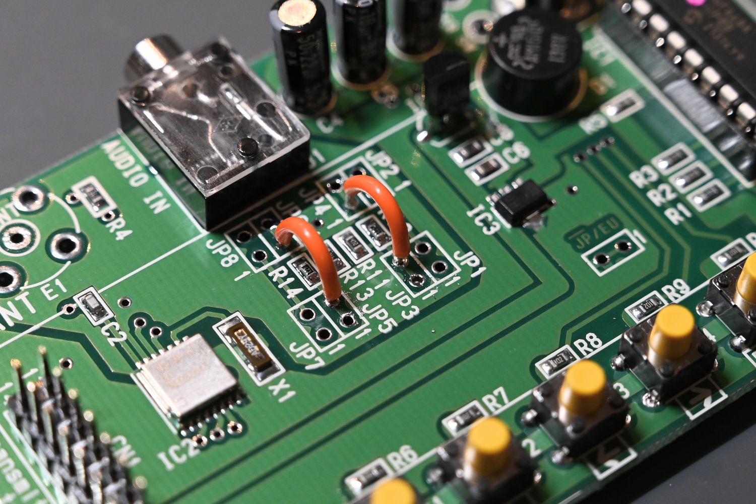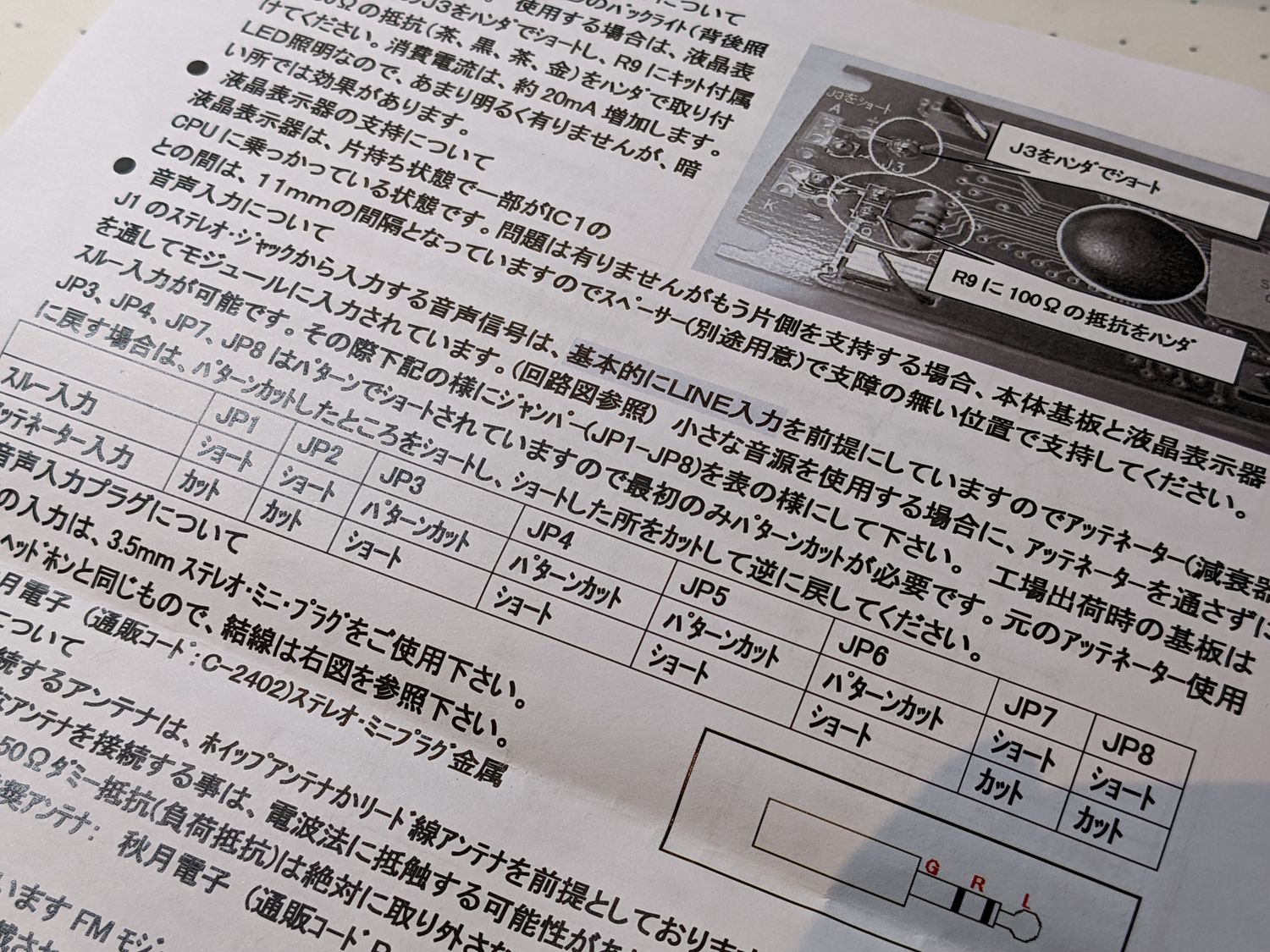 回路についてはさっぱりわからんがJP4-JP3間、JP5-JP6間に18kΩを噛ませると出力が2、3倍になるとか。